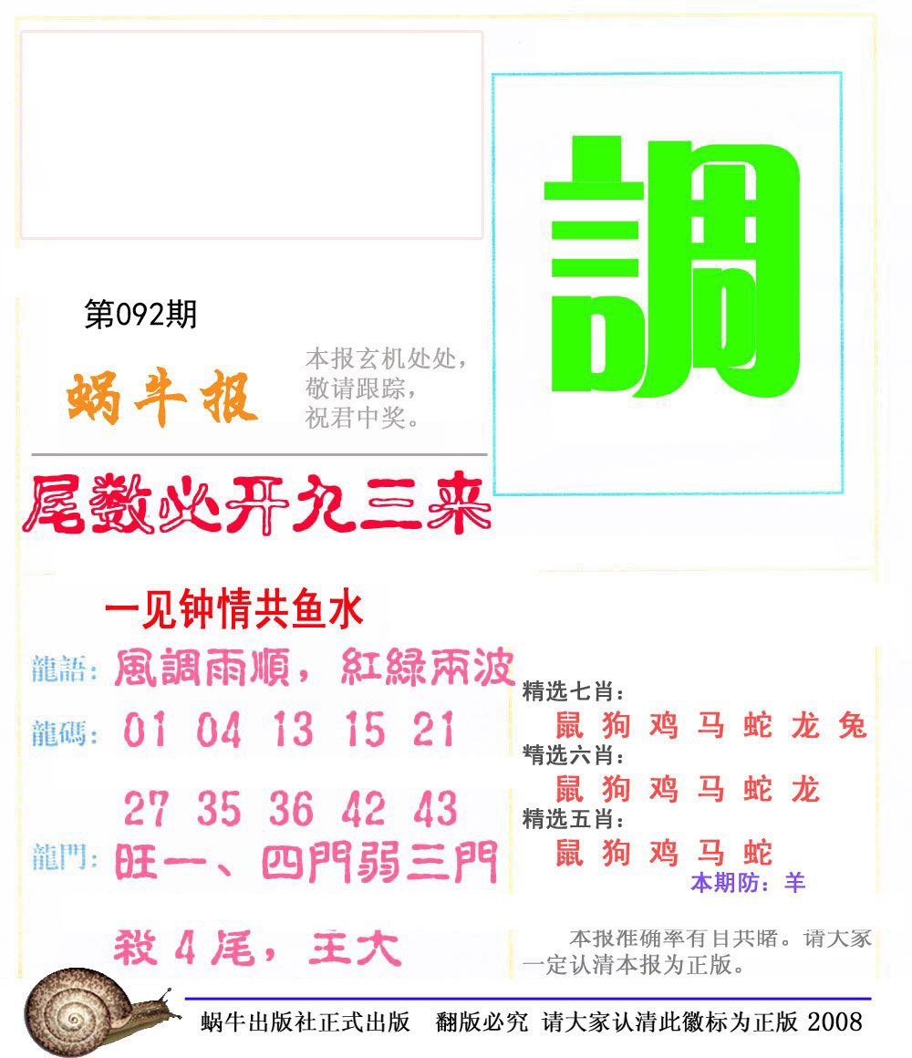 078期:绝杀三尾【7 0 4】开:狗09 |