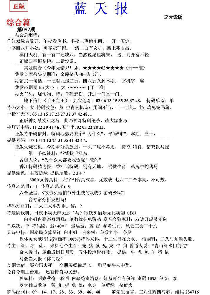 | 092期〖⑥码〗49 48 07 05 45 44 |