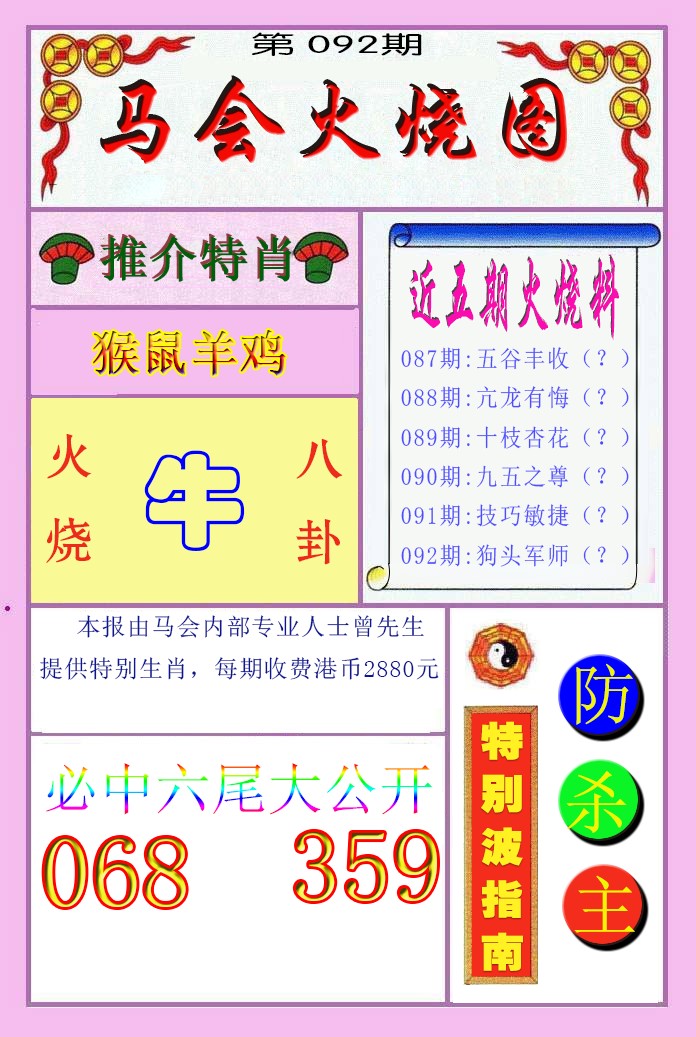092期绝杀中特【猴肖-0头-1尾-单数】开?00 |